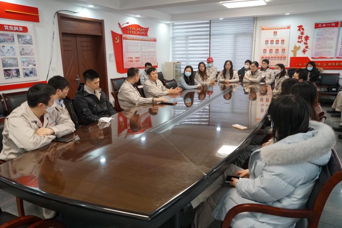 大家把齊師傅邀請到會議室,首先由學(xué)員代表向他匯報了入廠兩周以來的工作和學(xué)習(xí)情況。一班班長、法律風(fēng)控部鄒毅濤表示通過現(xiàn)場學(xué)習(xí),切身體驗鋼鐵是怎樣煉成的,深刻感受到鋼鐵產(chǎn)業(yè)是大國“筋骨”,唯有高質(zhì)量發(fā)展,才能推動我國加快建設(shè)成為制造強國、質(zhì)量強國。二班班長、人力資源部朱書涵分享了與師傅們相處的兩件小事,從細微處體會到產(chǎn)業(yè)工人高度的愛崗敬業(yè)、忘我的勞動奉獻和極致的精益求精,表達了師傅們對我們因材施教、傳承匠心的感激。三班班長、黨群工作部楊欣悅對工人師傅們守望相助、不計回報的細致關(guān)懷表達感謝,表示學(xué)員與師傅們結(jié)下了質(zhì)樸而深厚的情誼,深切感受到“天下工人是一家”、團結(jié)起來就會有力量。二班學(xué)員代表、國新研究院陳南表示在與工人師傅們的交流融入過程中,深深感佩于他們艱苦奮斗、質(zhì)樸無華、昂揚向上的樂觀品質(zhì),體悟到鋼鐵工人群體的精神力量。
