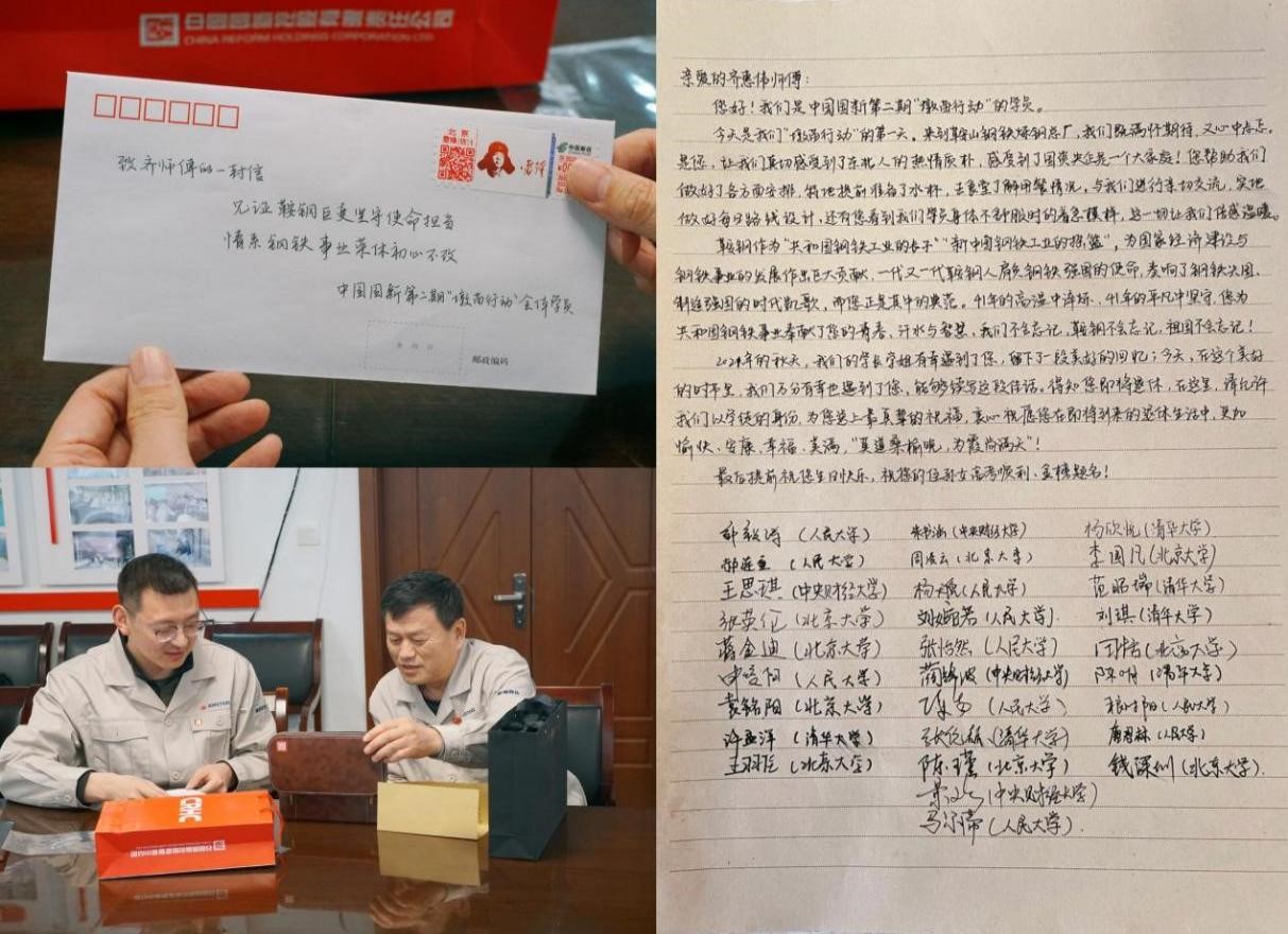 之后,大家向齊師傅贈送了精心準(zhǔn)備的紀(jì)念禮物和學(xué)員們親自撰寫、集體簽名的感謝信,對他四十年來扎根鞍鋼為鋼鐵事業(yè)奉獻一生致以崇高敬意,并祝愿齊師傅擁有快樂圓滿的退休生活。齊師傅收到感謝信與禮物后,表示非常驚喜和感動。他與大家一起回顧了自己的職業(yè)生涯和切身體會,并分享了自己與兩屆管培生學(xué)員們建立起的深厚情誼。他寄語學(xué)員要珍惜韶華、努力工作,把鞍鋼務(wù)實奉獻、不懈奮斗的精神融入血液,轉(zhuǎn)化成行動,期待大家為祖國和人民做出更大的貢獻。