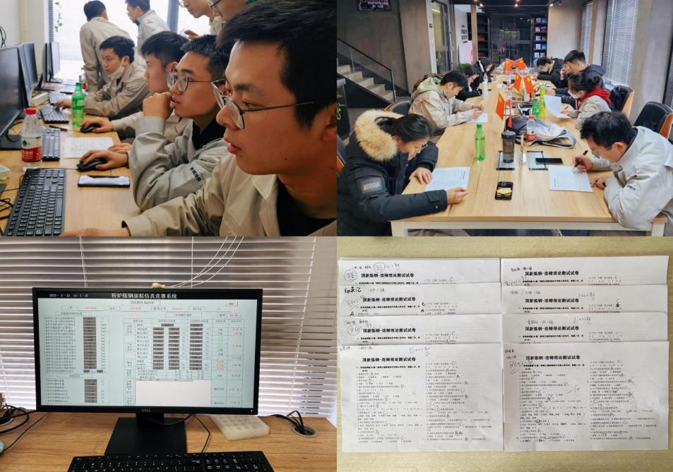 技能比武以學(xué)習(xí)小組為單位開展,測(cè)試內(nèi)容由紙面答題和上機(jī)實(shí)操兩部分組成。其中,紙面試卷邀請(qǐng)煉鋼總廠培訓(xùn)專家獨(dú)立命題,閉卷答題;上機(jī)部分通過電腦仿真系統(tǒng)完全模擬煉鋼、連鑄兩個(gè)作業(yè)環(huán)節(jié)的真實(shí)流程和全部要素,電腦自動(dòng)評(píng)分。