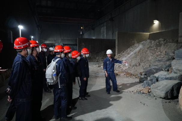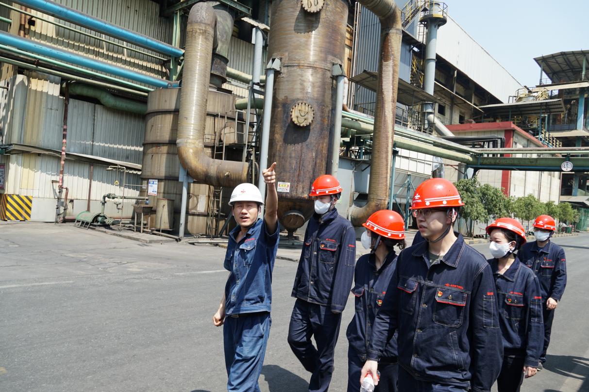腦子里繃直“安全紅線”,學(xué)員們走進了生產(chǎn)現(xiàn)場,“百尺”焙燒爐映入眼簾,為“熱氣騰騰”的廠房又增加了幾分熱度。跟著師傅穿行于鐵架管網(wǎng)間,在一處狹路,一剎那的疏忽,幾位學(xué)員的頭都重重磕上了旁邊鐵架,幸好戴著安全帽,才毫發(fā)無傷,“后怕”的同時,更深切體悟到生產(chǎn)安全的重要。耳邊機器轟鳴,刺鼻的氨氣讓大家不自覺緊皺眉頭,看著同樣滿頭大汗的師傅,學(xué)員們擦掉汗珠,認(rèn)真投入到對工藝流程和產(chǎn)業(yè)知識的學(xué)習(xí)中。