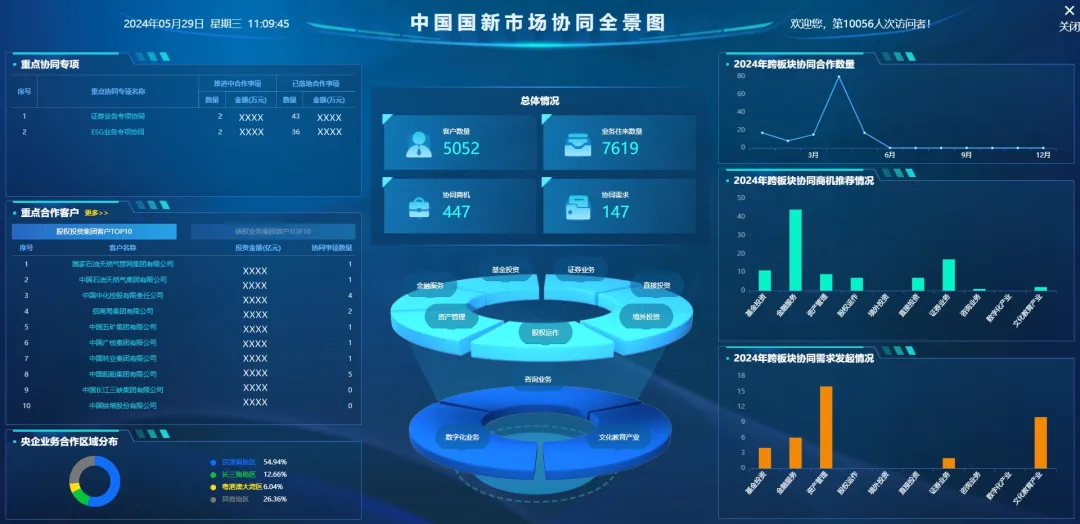 為確保市場協(xié)同各項(xiàng)制度機(jī)制高效落地,打破信息壁壘,打通整合業(yè)務(wù)、客戶、渠道等資源,中國國新結(jié)合業(yè)務(wù)實(shí)際開發(fā)建設(shè)了“上下聯(lián)動、板塊協(xié)同、雙向賦能”的數(shù)字化協(xié)同平臺,實(shí)現(xiàn)全系統(tǒng)客戶信息歸口及協(xié)同事項(xiàng)全流程閉環(huán)管理,匯聚沉淀全系統(tǒng)各級客戶及業(yè)務(wù)往來數(shù)據(jù)超13000條,初步打造形成中國國新客戶信息資源數(shù)據(jù)港,持續(xù)提升客戶綜合服務(wù)能力。