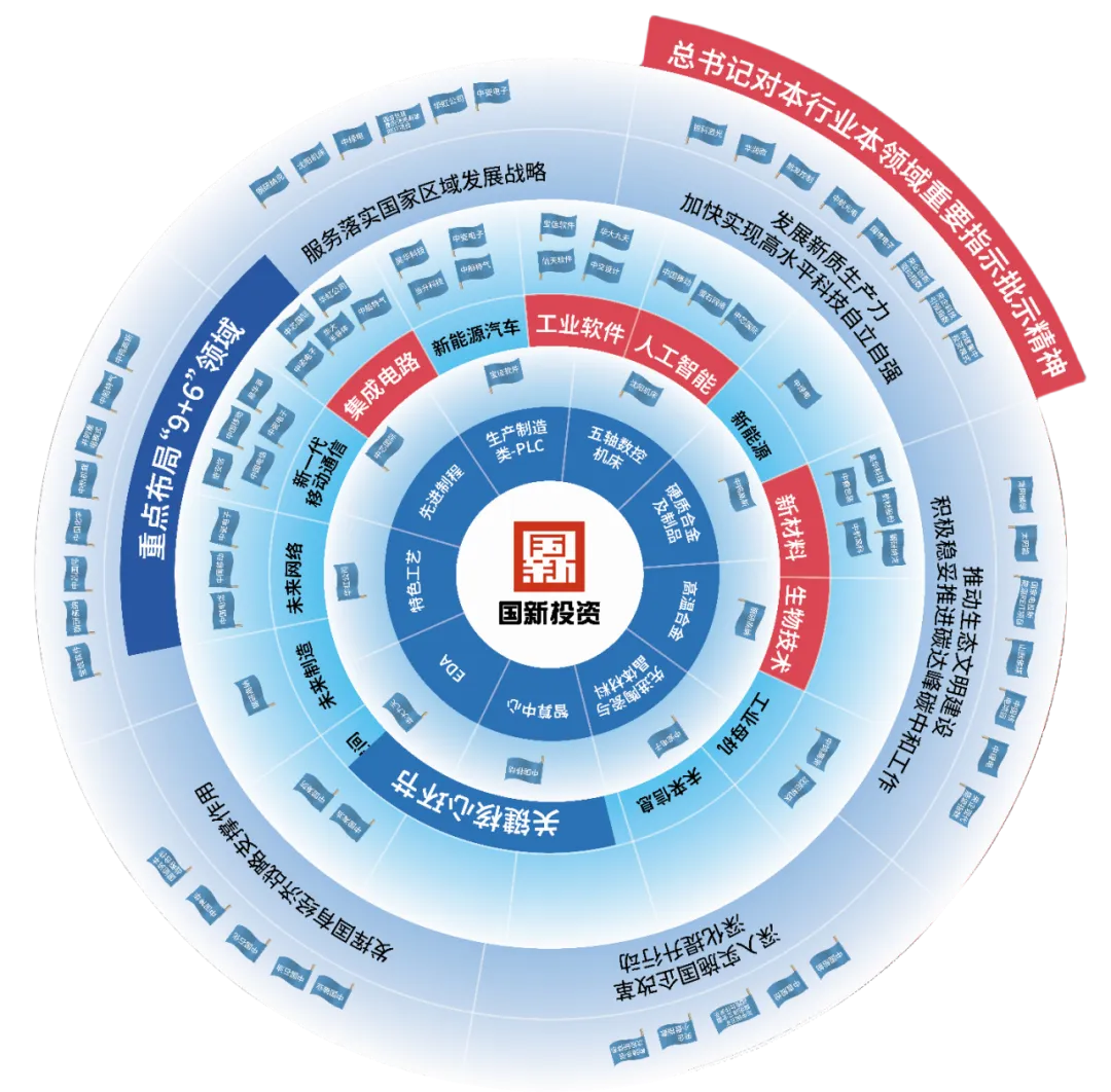 國新投資堅(jiān)決貫徹落實(shí)習(xí)近平總書記關(guān)于發(fā)展新質(zhì)生產(chǎn)力的重要論述精神和關(guān)于加快實(shí)現(xiàn)高水平科技自立自強(qiáng)的重要指示批示精神,立足自身資源稟賦,集中資源、集中優(yōu)勢、集中力量,“大規(guī)模、高比例、長期限”投向科技創(chuàng)新和國家戰(zhàn)略安全領(lǐng)域中戰(zhàn)略意義突出、前瞻性和原創(chuàng)性強(qiáng)、攻堅(jiān)緊迫性高的重要資產(chǎn),為央企開展科技創(chuàng)新提供直接資金支持。圍繞產(chǎn)業(yè)鏈部署資金鏈,在前述重點(diǎn)領(lǐng)域繪制產(chǎn)業(yè)投資地圖,沿產(chǎn)業(yè)鏈開展投資布局,集中投資了一批集成電路、工業(yè)母機(jī)、工業(yè)軟件等領(lǐng)域的龍頭央企上市公司,著力推動國有資本向前瞻性戰(zhàn)略性新興產(chǎn)業(yè)轉(zhuǎn)型集聚。截至2024年6月底,國新投資已形成“重點(diǎn)突出、梯次分布、攻守兼?zhèn)洹钡膽?zhàn)新央企體系布局,投資覆蓋國務(wù)院國資委“9+6”領(lǐng)域56家央企集團(tuán)旗下的151家上市公司,成為30余戶戰(zhàn)新領(lǐng)域代表性龍頭央企上市公司前十大顯名股東,實(shí)現(xiàn)了對九大戰(zhàn)新產(chǎn)業(yè)的全覆蓋。