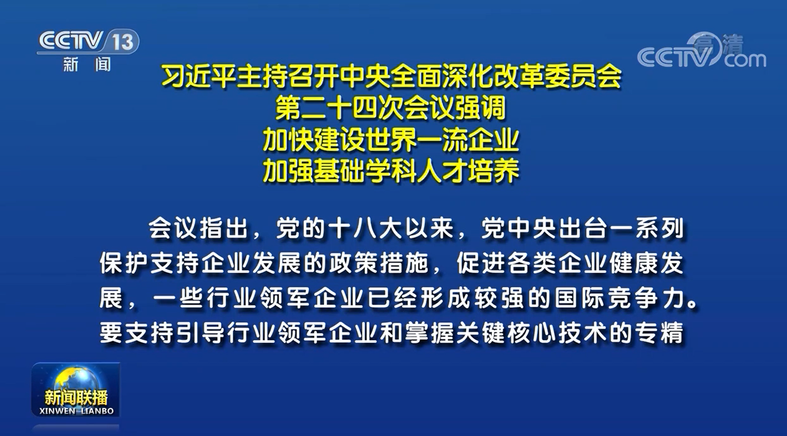 新華社北京2月28日電 中共中央總書記、國家主席、中央軍委主席、中央全面深化改革委員會主任習(xí)近平2月28日下午主持召開中央全面深化改革委員會第二十四次會議,審議通過了《關(guān)于加快建設(shè)世界一流企業(yè)的指導(dǎo)意見》、《推進(jìn)普惠金融高質(zhì)量發(fā)展的實(shí)施意見》、《關(guān)于加強(qiáng)基礎(chǔ)學(xué)科人才培養(yǎng)的意見》、《關(guān)于推進(jìn)國有企業(yè)打造原創(chuàng)技術(shù)策源地的指導(dǎo)意見》。