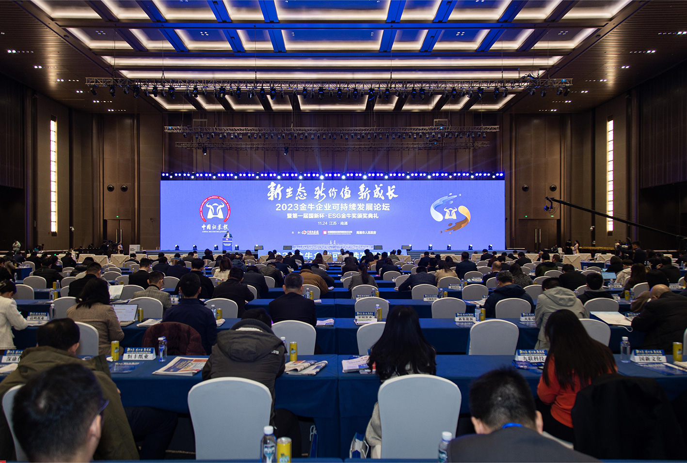 圖為國(guó)新咨詢承辦的首屆國(guó)新杯·ESG金牛獎(jiǎng)?lì)C獎(jiǎng)典禮