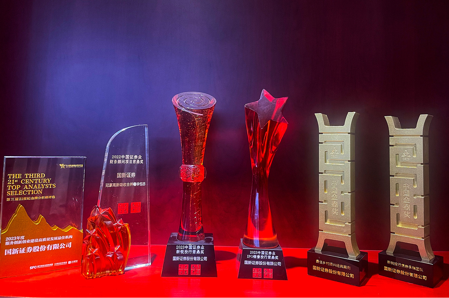 圖為國(guó)新證券揭牌以來(lái)獲得的各項(xiàng)榮譽(yù)