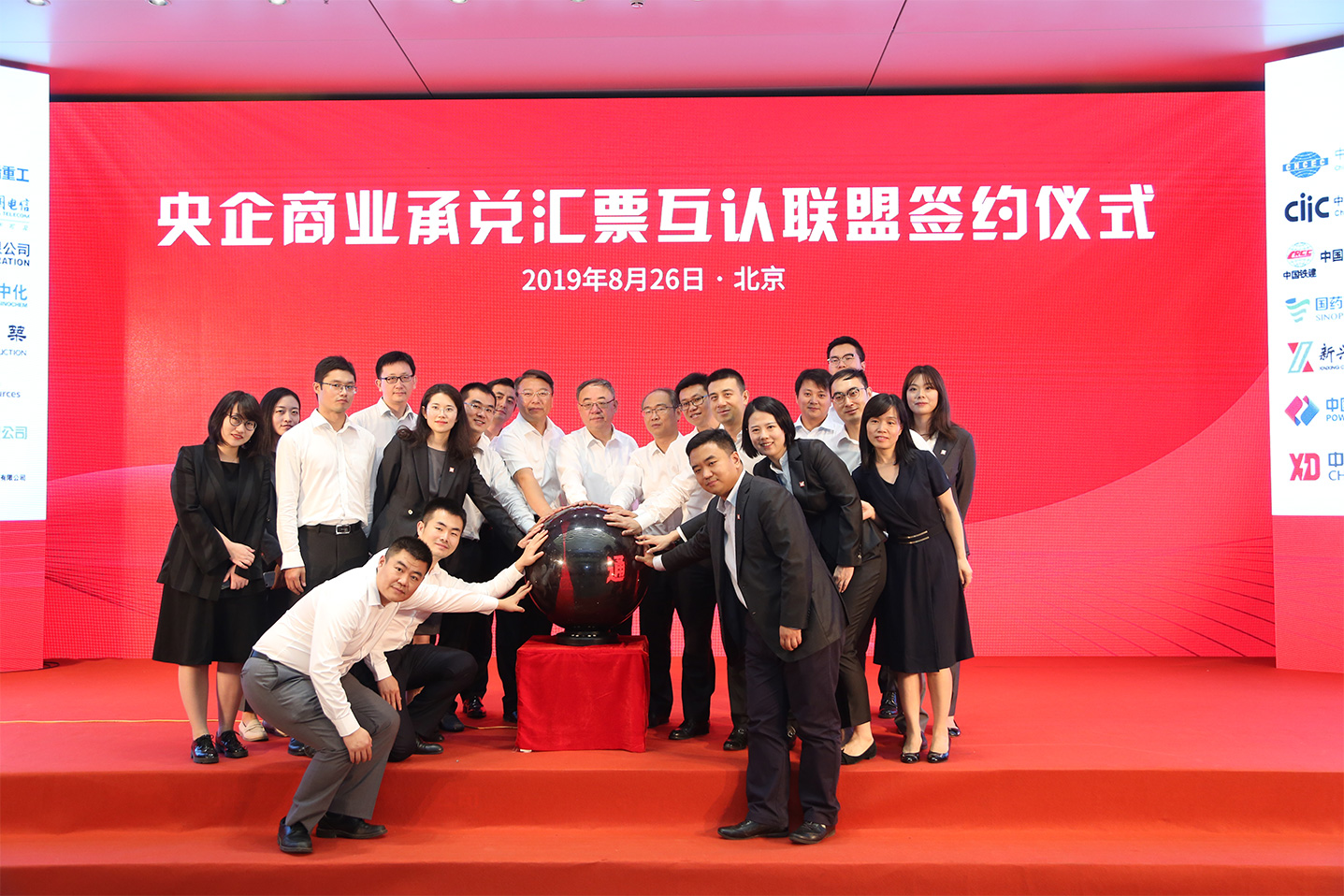 圖為2019年8月央企商業(yè)承兌匯票互認(rèn)聯(lián)盟簽約儀式