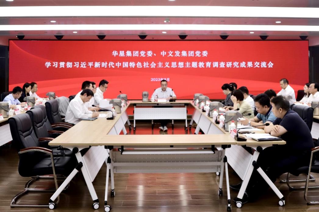 2023年8月3日,華星集團(tuán)黨委、中文發(fā)集團(tuán)黨委召開學(xué)習(xí)貫徹習(xí)近平新時(shí)代中國特色社會主義思想主題教育調(diào)查研究成果交流會。