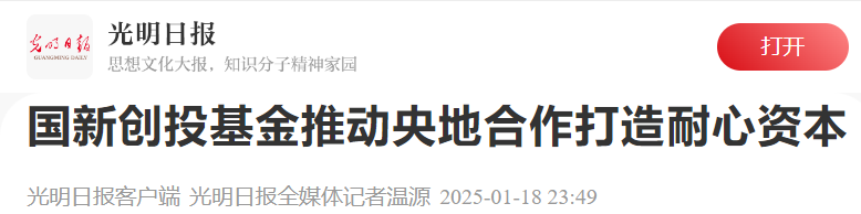 今天,推出系列報道第3期:光明日報推出的《國新創(chuàng)投基金推動央地合作打造耐心資本》。