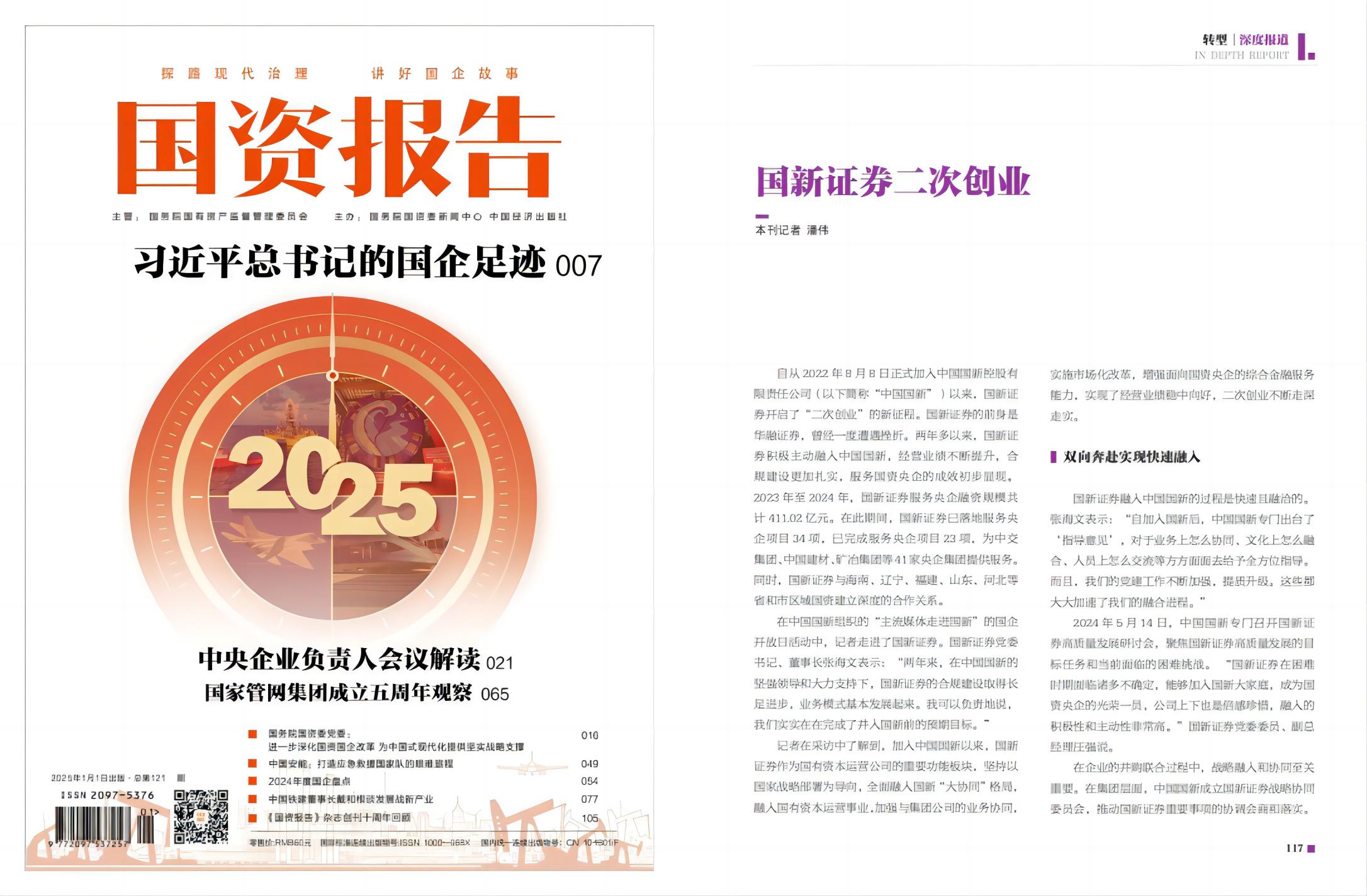 今天,推出相關(guān)報(bào)道第7篇:《國(guó)資報(bào)告》2025年1月1日刊發(fā)的《國(guó)新證券二次創(chuàng)業(yè)》。