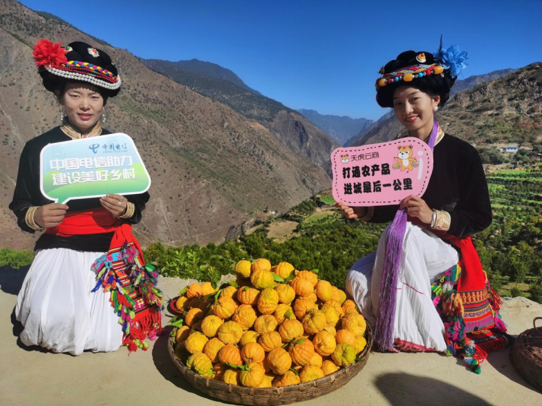 中國(guó)電信天虎云商作為助農(nóng)電商平臺(tái),通過(guò)直播的方式宣傳四川木里的皺皮柑產(chǎn)業(yè) 中國(guó)電信供圖