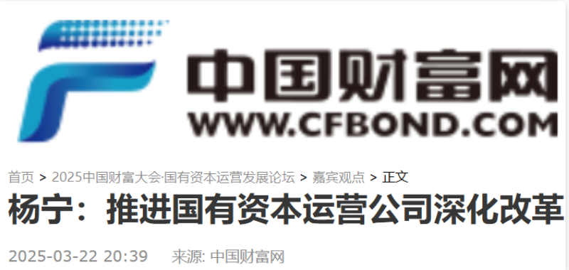 3月22日,新華社旗下的中國(guó)財(cái)富網(wǎng)報(bào)道了中國(guó)國(guó)新副總經(jīng)理?xiàng)顚幵?span data-index="15" style="font-family: 微軟雅黑, "Microsoft YaHei"; font-size: 16px; line-height: 2em;">“2025中國(guó)財(cái)富大會(huì)?國(guó)有資本運(yùn)營(yíng)發(fā)展論壇”上,以“積極履行戰(zhàn)略使命 持續(xù)推進(jìn)國(guó)有資本運(yùn)營(yíng)公司深化改革”為題發(fā)表主旨演講?,F(xiàn)將相關(guān)報(bào)道全文分享如下:
