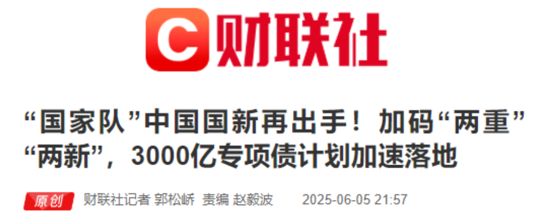 6月5日,財聯(lián)社報道中國國新發(fā)行230億元專項債,支持“兩重”“兩新”重大項目投資,并在服務(wù)國有企業(yè)重大改革、維護資本市場穩(wěn)定等方面發(fā)揮重要作用?,F(xiàn)將全文分享如下: