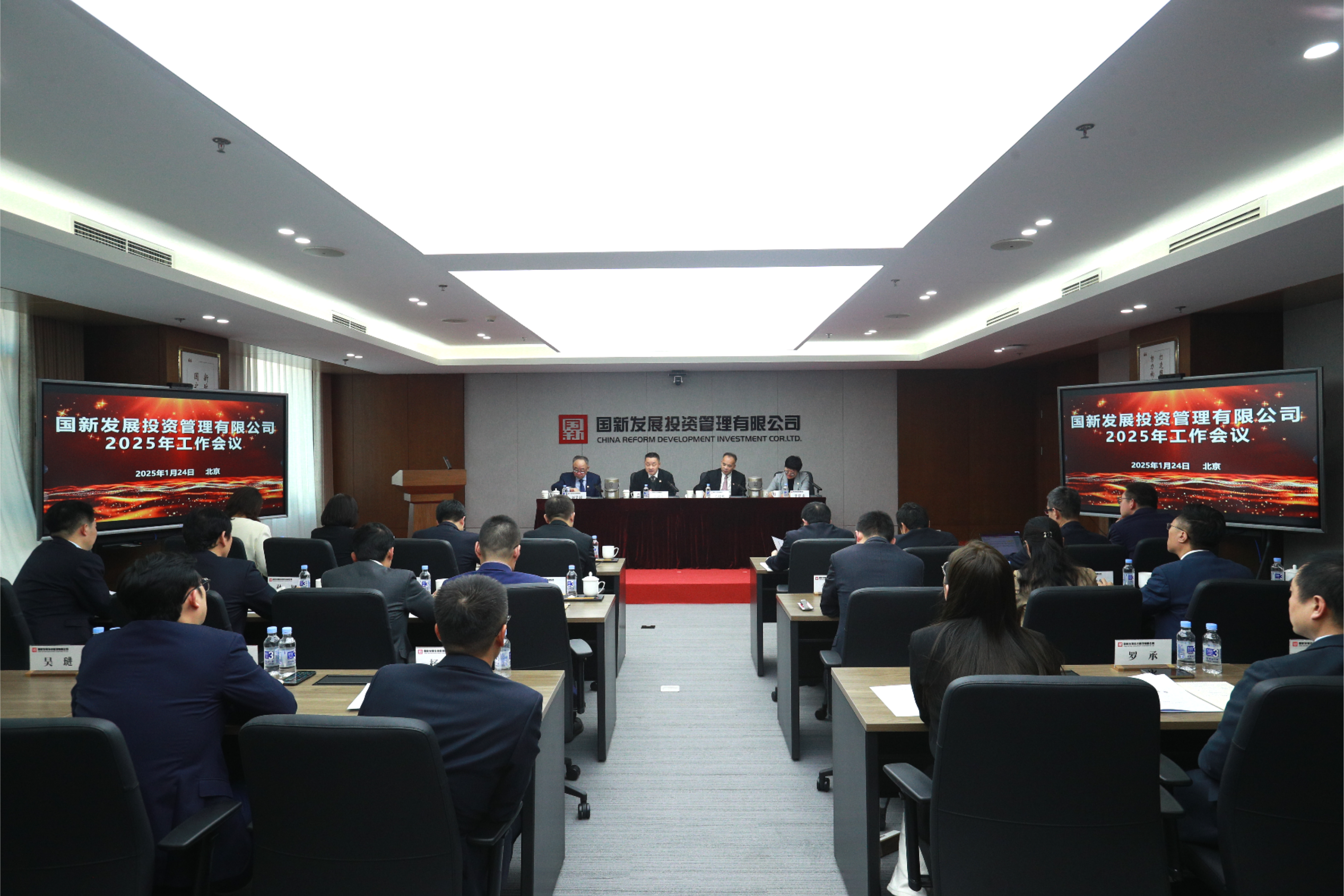 中國國新總部有關(guān)部室負(fù)責(zé)人、專職外部董事,國新發(fā)展全體員工參加會(huì)議。
