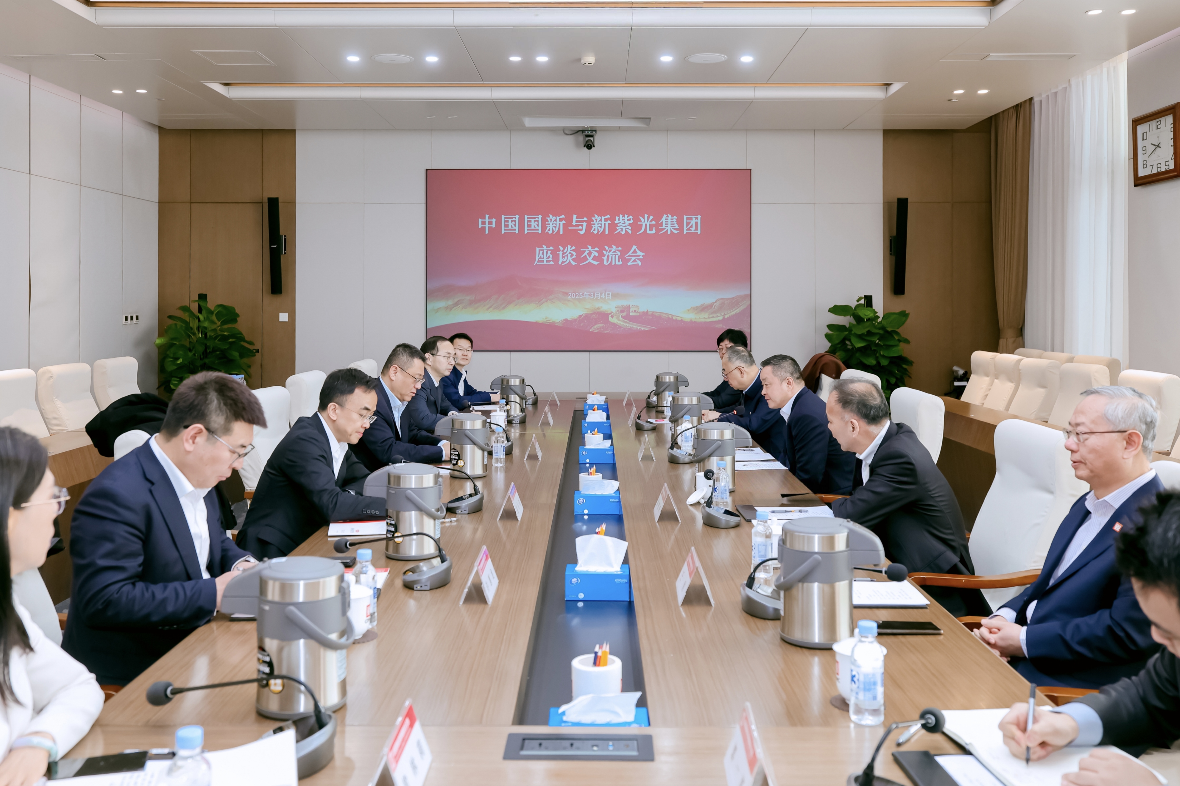 簽約儀式前,雙方進行座談交流。徐思偉對李濱一行表示歡迎,并介紹了中國國新近年來功能作用發(fā)揮情況。他表示,新紫光集團是具有全球競爭力的智能科技產(chǎn)業(yè)集團,擁有從芯片半導(dǎo)體到數(shù)字經(jīng)濟全產(chǎn)業(yè)鏈的戰(zhàn)略布局。希望雙方以此次戰(zhàn)略合作協(xié)議簽約為起點,持續(xù)深化落實雙方在股權(quán)投資、金融服務(wù)等領(lǐng)域的業(yè)務(wù)合作,整合優(yōu)勢資源,建立全方位、多層次的合作關(guān)系,攜手加快培育新質(zhì)生產(chǎn)力。