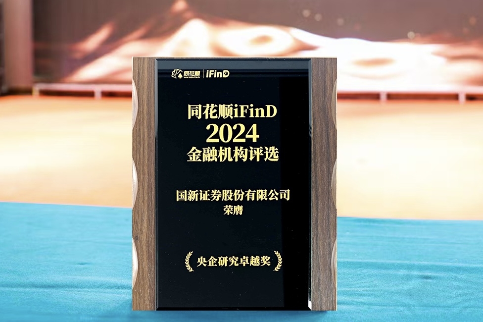 日前,同花順2024金融機(jī)構(gòu)評(píng)選結(jié)果揭曉,國新證券獲“央企研究卓越獎(jiǎng)”。