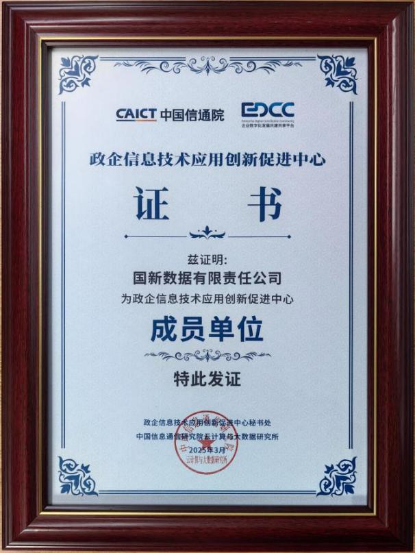 3月26日,在政企信息技術(shù)應(yīng)用創(chuàng)新促進(jìn)中心(以下簡(jiǎn)稱促進(jìn)中心)2025年年會(huì)上,國(guó)新數(shù)據(jù)正式成為促進(jìn)中心成員單位。