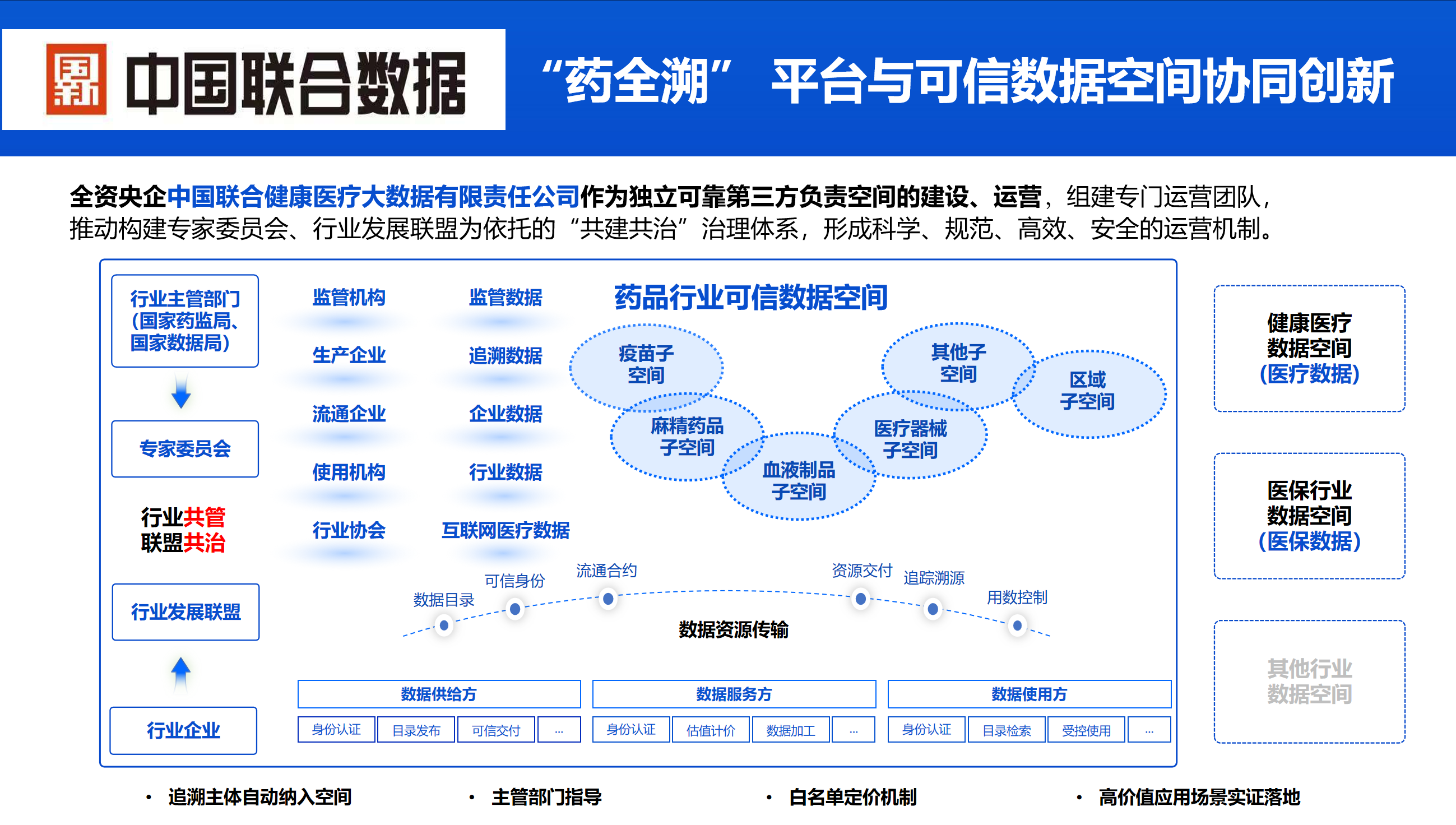 “藥全溯”平臺依托可信數(shù)據(jù)空間技術(shù),構(gòu)建了覆蓋藥品研發(fā)、生產(chǎn)、流通、使用全生命周期的數(shù)據(jù)協(xié)同體系。通過消除醫(yī)藥產(chǎn)業(yè)鏈各環(huán)節(jié)間的數(shù)據(jù)壁壘,平臺實現(xiàn)了藥品追溯信息的實時共享、跨機(jī)構(gòu)核驗與智能監(jiān)管,有效解決了行業(yè)內(nèi)存在的“數(shù)據(jù)孤島”“信息不對稱”等痛點(diǎn),為保障藥品質(zhì)量安全構(gòu)建了數(shù)字化防護(hù)體系。