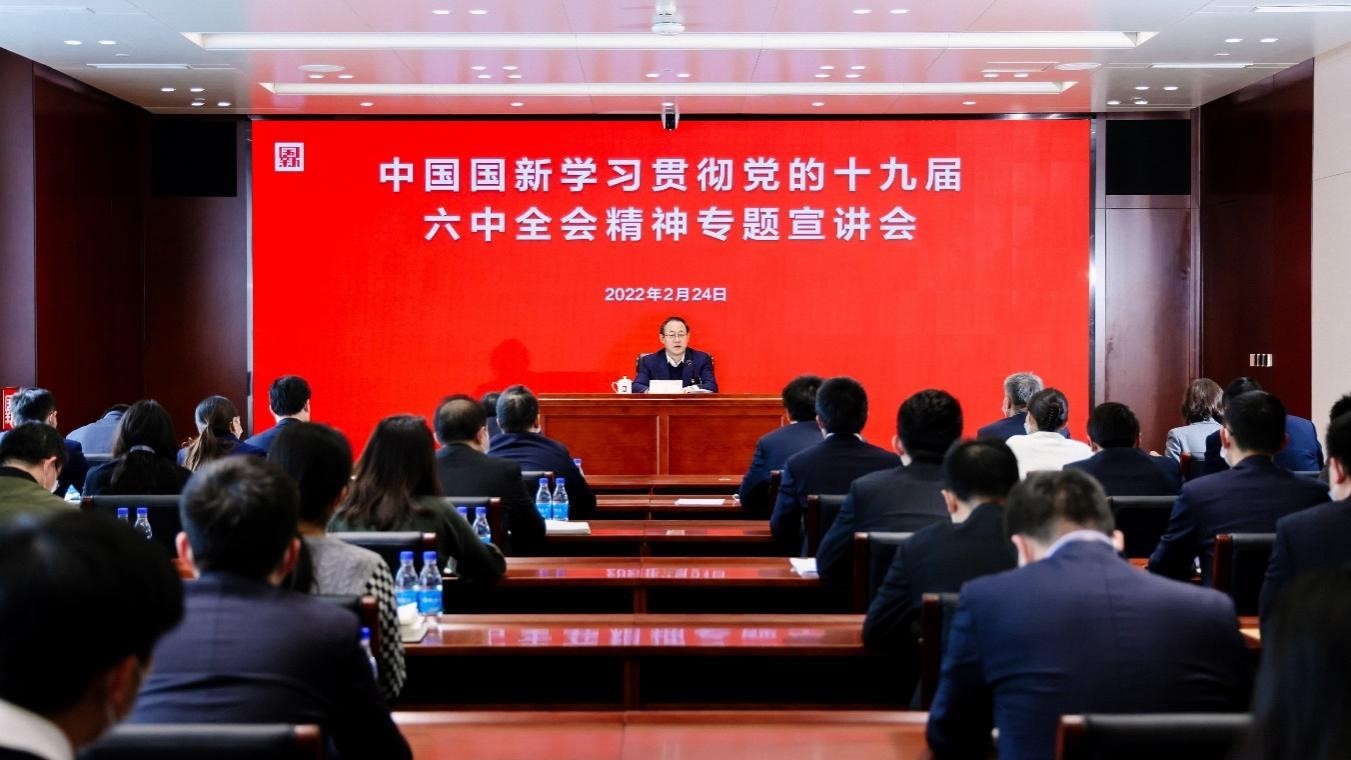 2022年2月,中國國新領(lǐng)導班子成員發(fā)揮“頭雁效應”,帶頭在分管領(lǐng)域、所在支部,結(jié)合改革發(fā)展黨建實際,開展學習貫徹黨的十九屆六中全會精神專題宣講,推動習近平新時代中國特色社會主義思想深入人心,全會精神深入基層,教育引導廣大干部員工堅持“兩個確立”,增強“四個意識”,堅定“四個自信”,做到“兩個維護”,奮力譜寫公司高質(zhì)量發(fā)展新篇章。