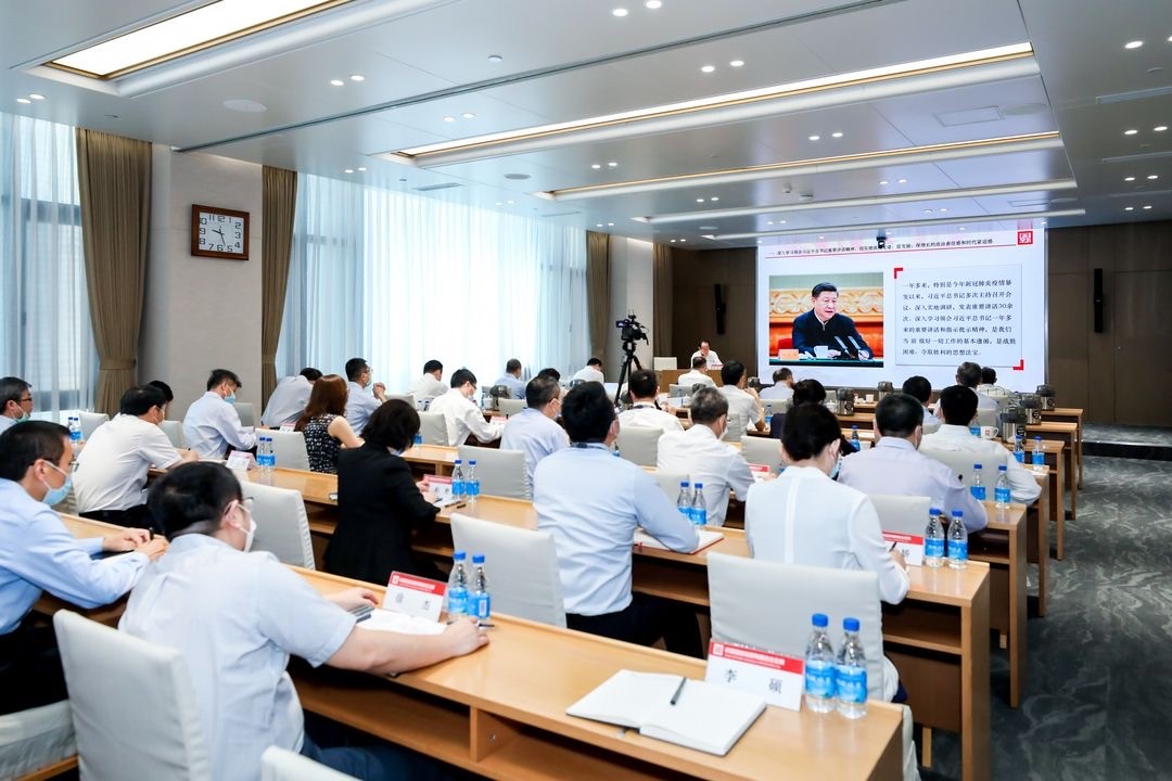 7月1日,中國(guó)國(guó)新召開(kāi)慶祝中國(guó)共產(chǎn)黨成立99周年大會(huì),表彰中國(guó)國(guó)新優(yōu)秀共產(chǎn)黨員、優(yōu)秀黨務(wù)工作者、先進(jìn)基層黨組織和“中國(guó)國(guó)新共產(chǎn)黨員先鋒崗”,舉行中國(guó)國(guó)新黨校揭牌儀式,黨委書(shū)記、董事長(zhǎng)周渝波作題為《以習(xí)近平新時(shí)代中國(guó)特色社會(huì)主義思想為指引 堅(jiān)定打造中國(guó)國(guó)新國(guó)有資本運(yùn)營(yíng)升級(jí)版的信心和決心》專(zhuān)題黨課。國(guó)務(wù)院國(guó)資委黨建局副局長(zhǎng)丁少中,干部教育培訓(xùn)中心主任、中央黨校國(guó)資委分校常務(wù)副校長(zhǎng)李軍出席會(huì)議。公司黨委副書(shū)記、總經(jīng)理莫德旺主持會(huì)議。公司領(lǐng)導(dǎo)、中央企業(yè)專(zhuān)職外部董事黨支部書(shū)記參加會(huì)議??偛扛鼽h支部書(shū)記,總部資深經(jīng)理及以上人員,“兩優(yōu)一先”獲獎(jiǎng)代表、先鋒崗代表50余人在主會(huì)場(chǎng)參會(huì);各所出資企業(yè)有關(guān)人員230余人在20個(gè)分會(huì)場(chǎng)同步視頻參會(huì)。
