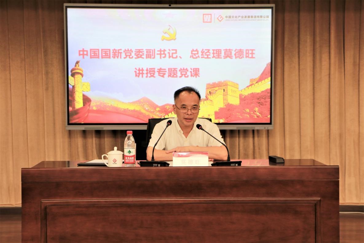 9月14日下午,中國(guó)國(guó)新黨委副書記、總經(jīng)理莫德旺以《持續(xù)加強(qiáng)黨的領(lǐng)導(dǎo)黨的建設(shè) 引領(lǐng)保障中文發(fā)集團(tuán)升級(jí)發(fā)展邁出新步伐》為題,為中文發(fā)集團(tuán)干部員工講授專題黨課。