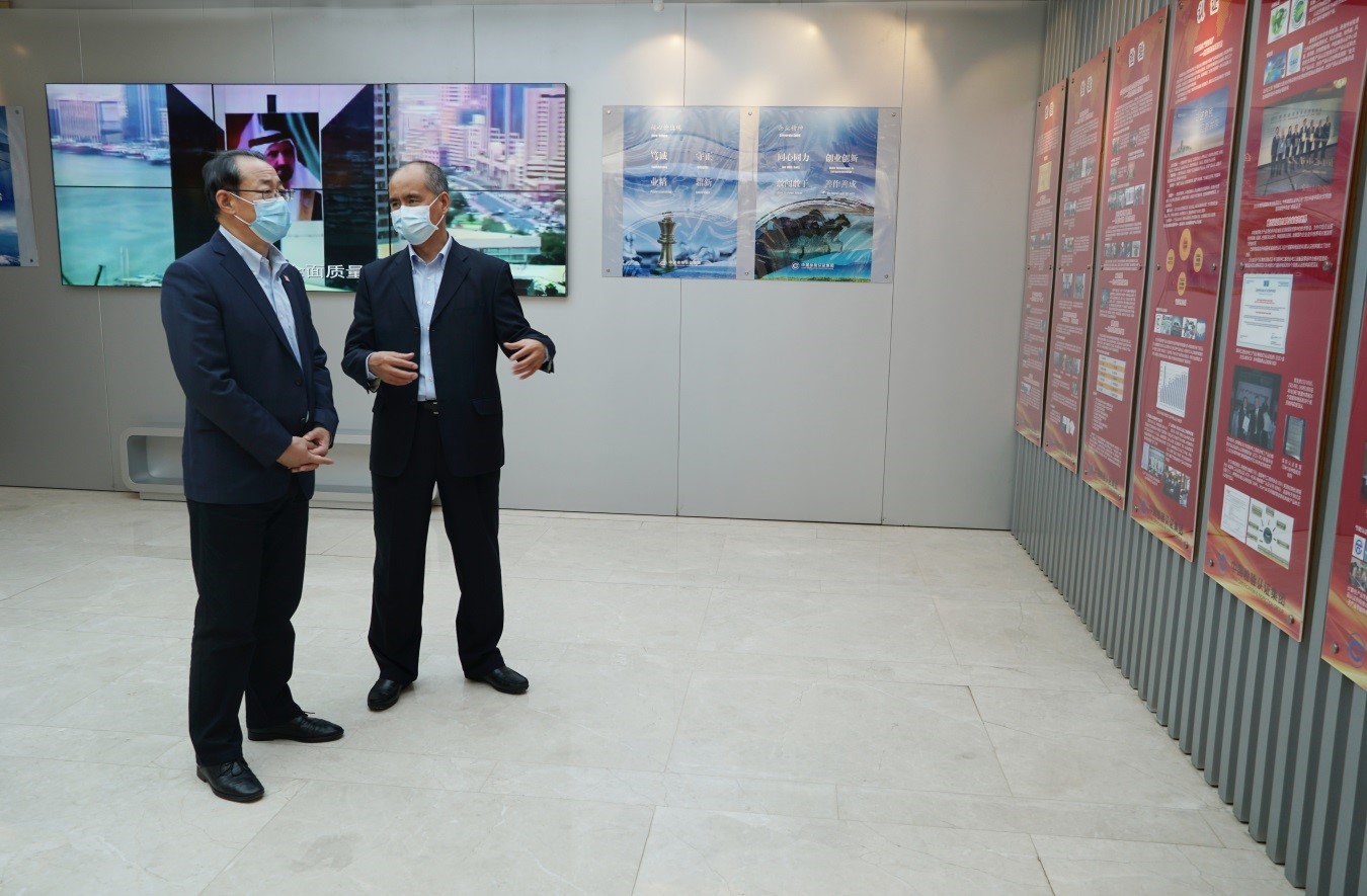 周渝波一行首先參觀了中檢集團企業(yè)文化展廳,詳細了解了中檢集團歷史沿革、業(yè)務布局等情況。
