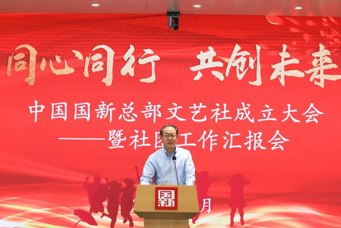 周渝波代表公司領(lǐng)導班子向文藝社的成立表示熱烈祝賀,對公司工會和團委對本次活動的精心組織給予肯定。他指出,近年來公司引進了很多高素質(zhì)、多才多藝的年輕員工,組成了一支積極向上、富有活力和戰(zhàn)斗力的年輕人才隊伍。中國國新要貫徹落實習近平總書記關(guān)于黨的群團工作的重要講話精神,通過開展“接地氣、鼓士氣、聚人氣”的活動,傳遞正能量,調(diào)動大家的積極性和創(chuàng)造力,激發(fā)干事創(chuàng)業(yè)的工作熱情,年輕員工要積極參加社團活動,盡快熟悉國新、融入國新。他強調(diào),公司黨委將一如既往地支持群團工作,推動國新文化建設(shè)再上新臺階。