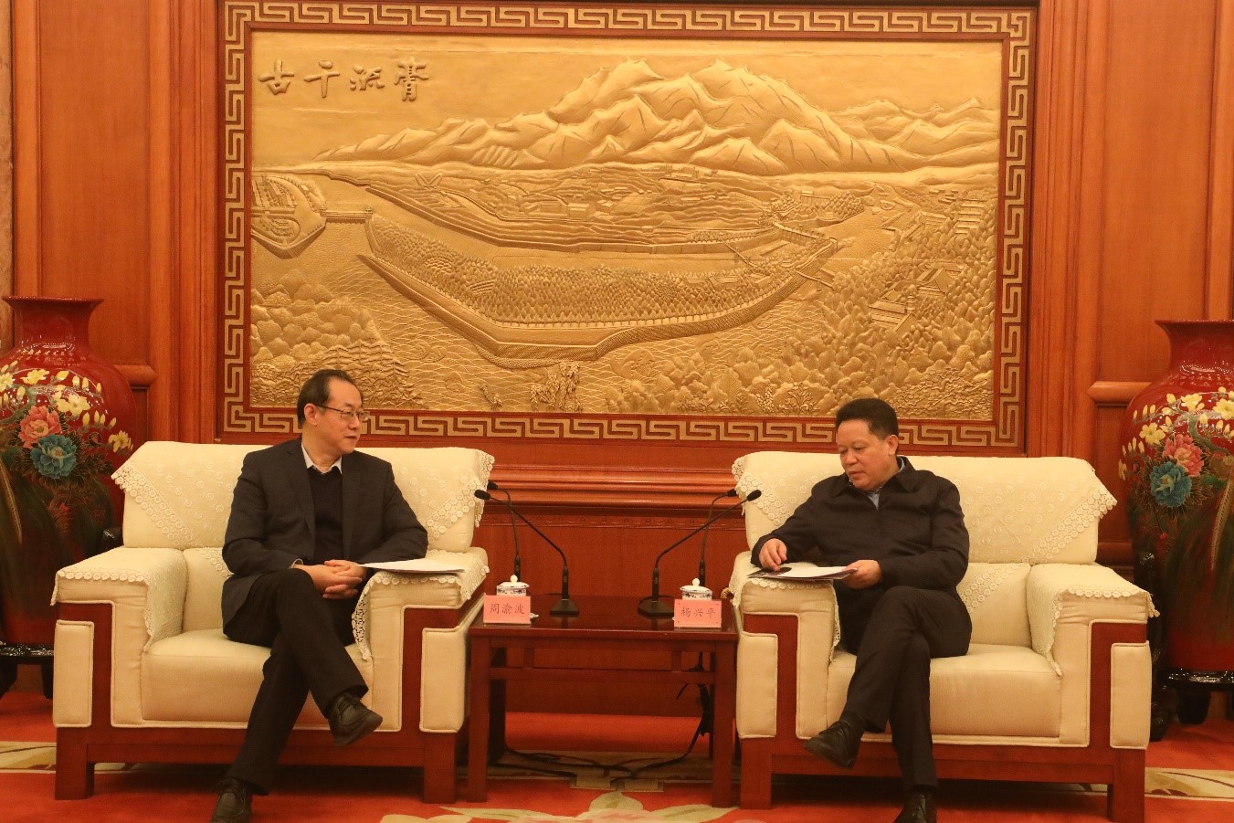11月23-24日,中國國新黨委書記、董事長周渝波帶隊(duì)先后赴成都、遂寧調(diào)研。在成都調(diào)研期間,周渝波與四川省副省長楊興平進(jìn)行了座談,省政府副秘書長鐘承林、省衛(wèi)健委、省醫(yī)保局、省藥監(jiān)局主要負(fù)責(zé)人參加了座談。遂寧市市委書記邵革軍,市委副書記、市長鄧正權(quán),市委副書記景臨等市領(lǐng)導(dǎo)陪同調(diào)研遂寧市。