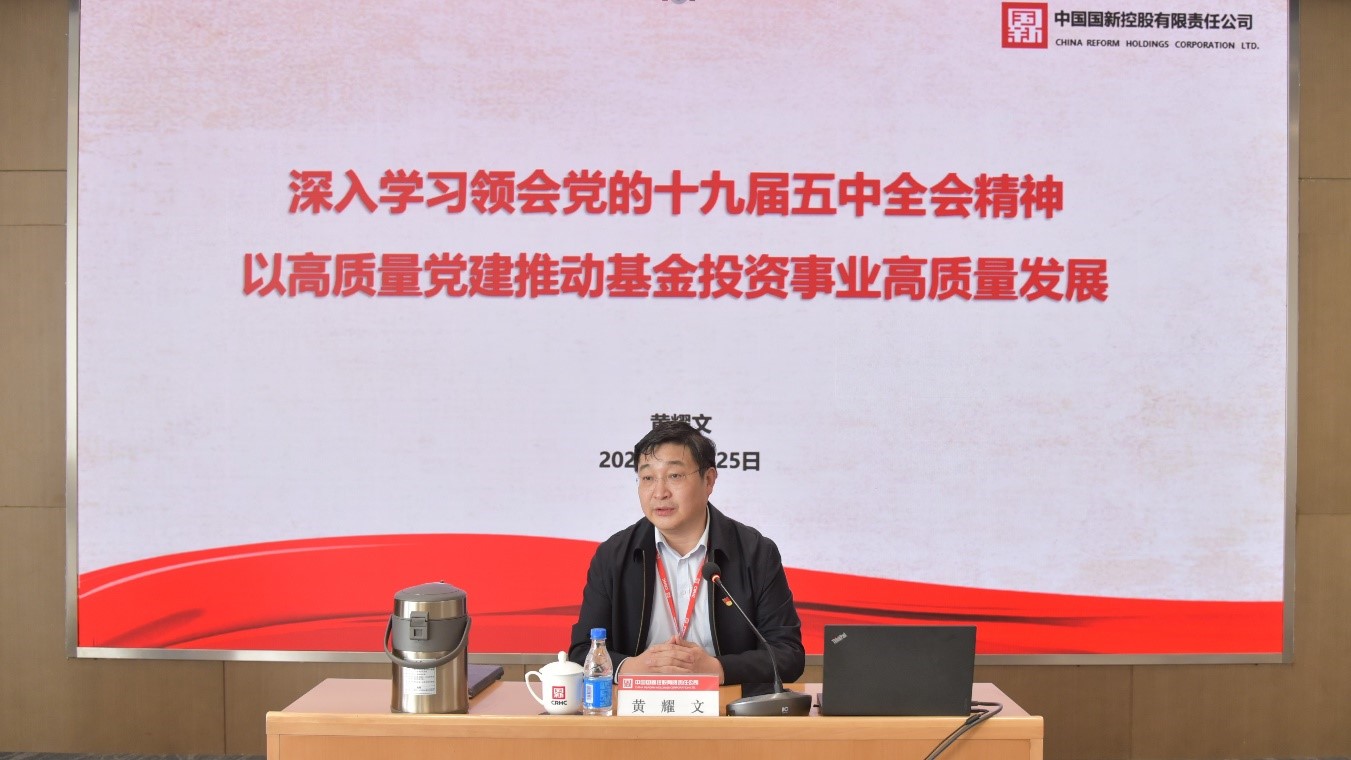 12月25日,中國(guó)國(guó)新黨委副書(shū)記、副總經(jīng)理黃耀文以《深入學(xué)習(xí)領(lǐng)會(huì)黨的十九屆五中全會(huì)精神 以高質(zhì)量黨建推動(dòng)基金投資事業(yè)高質(zhì)量發(fā)展》為題,為黨群與宣傳黨支部、國(guó)新基金管理公司黨支部全體黨員、入黨積極分子講授專題黨課。