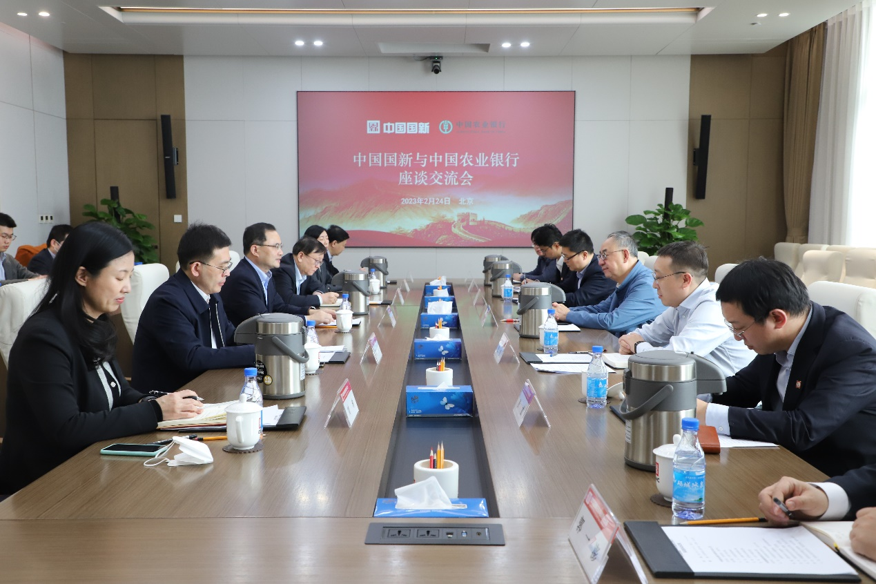 2月24日,中國(guó)國(guó)新黨委委員、總會(huì)計(jì)師劉學(xué)詩(shī)在公司總部與來(lái)訪的中國(guó)農(nóng)業(yè)銀行黨委委員、副行長(zhǎng)劉加旺一行進(jìn)行座談交流。