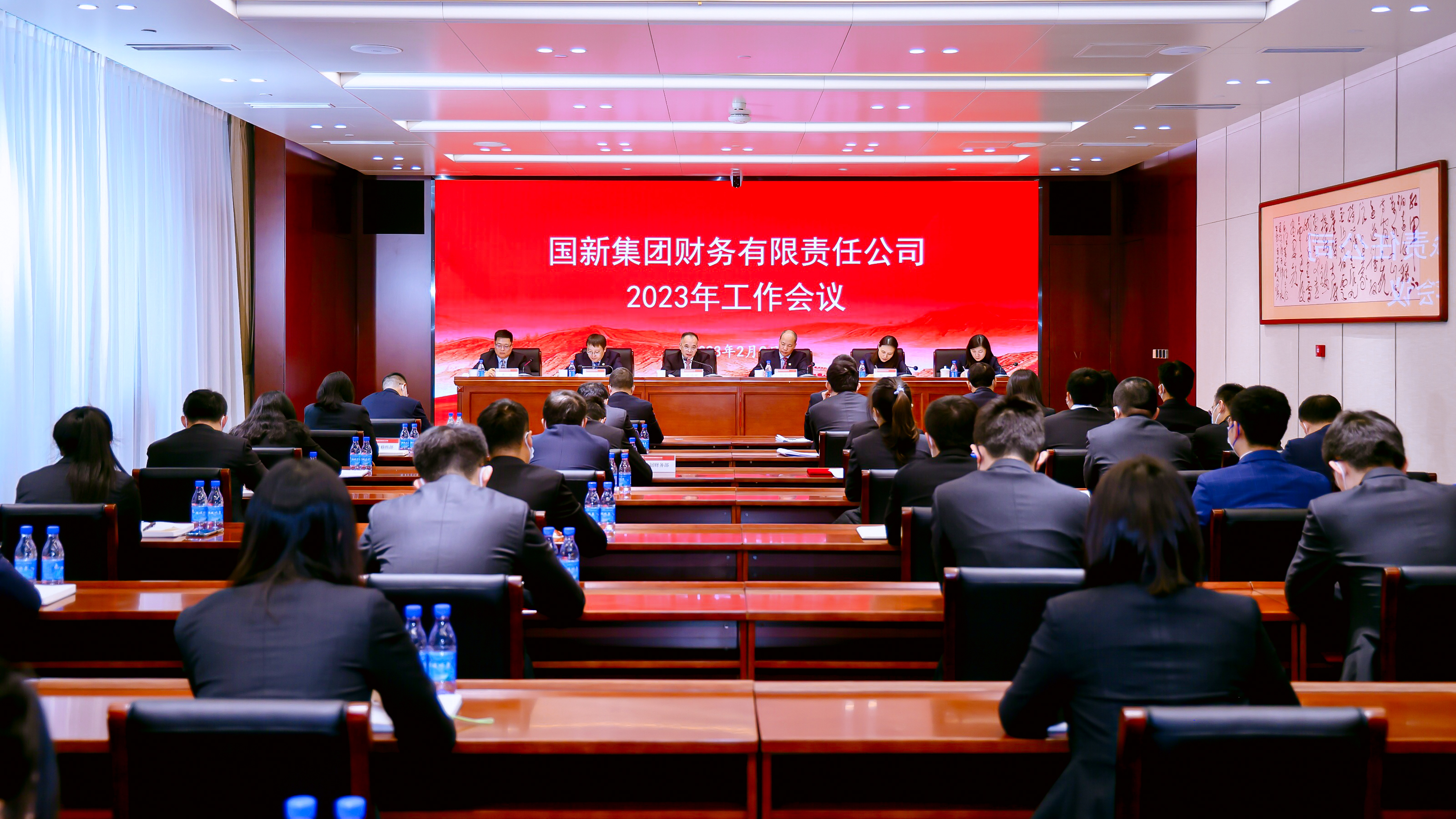 總部相關(guān)部室負(fù)責(zé)人,國新財(cái)務(wù)公司全體干部員工參加會(huì)議。