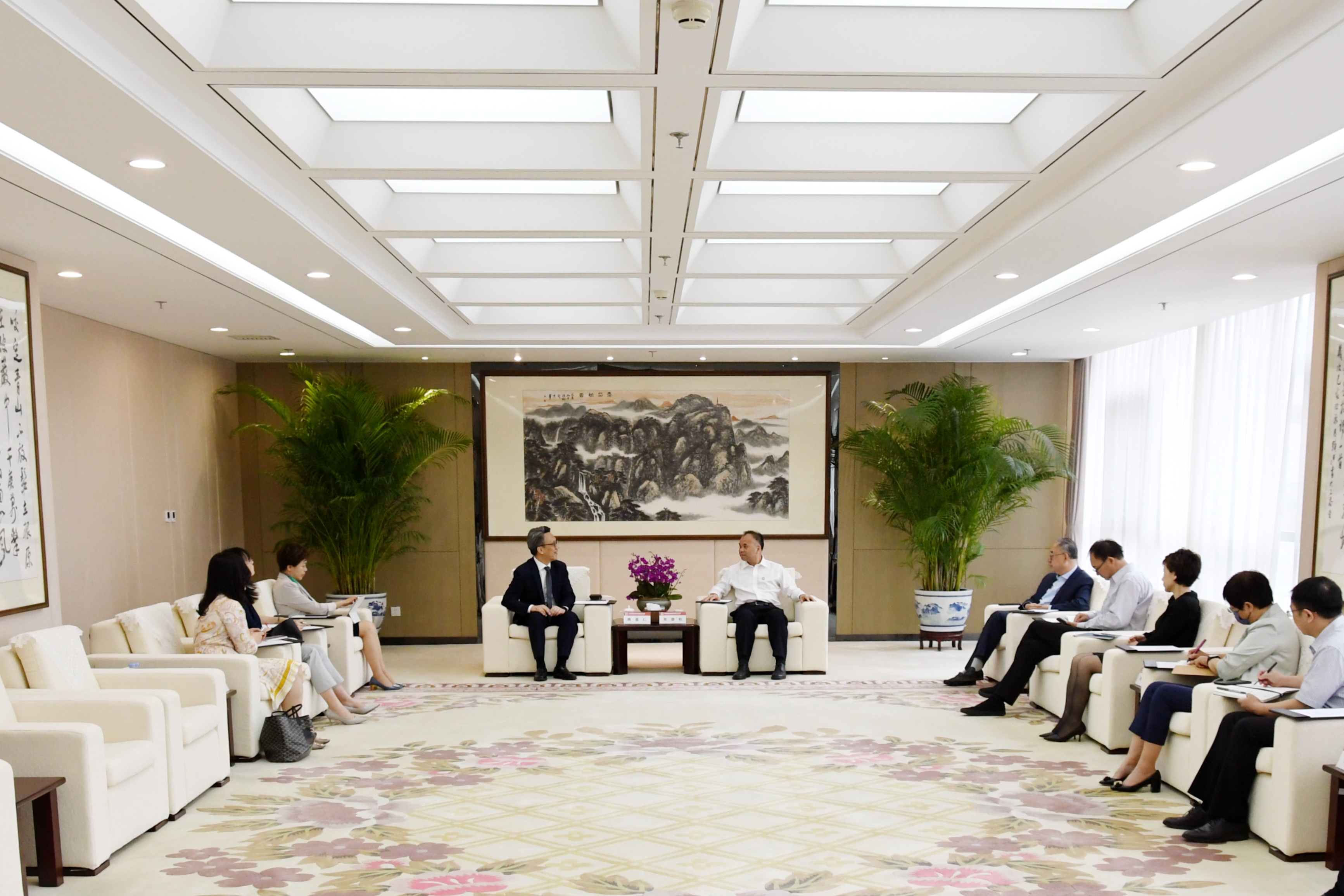 5月30日,中國(guó)國(guó)新黨委副書(shū)記、董事、總經(jīng)理莫德旺在公司總部會(huì)見(jiàn)香港交易所聯(lián)席營(yíng)運(yùn)總監(jiān)姚嘉仁,中國(guó)國(guó)新黨委委員、總會(huì)計(jì)師劉學(xué)詩(shī)參加會(huì)見(jiàn)。