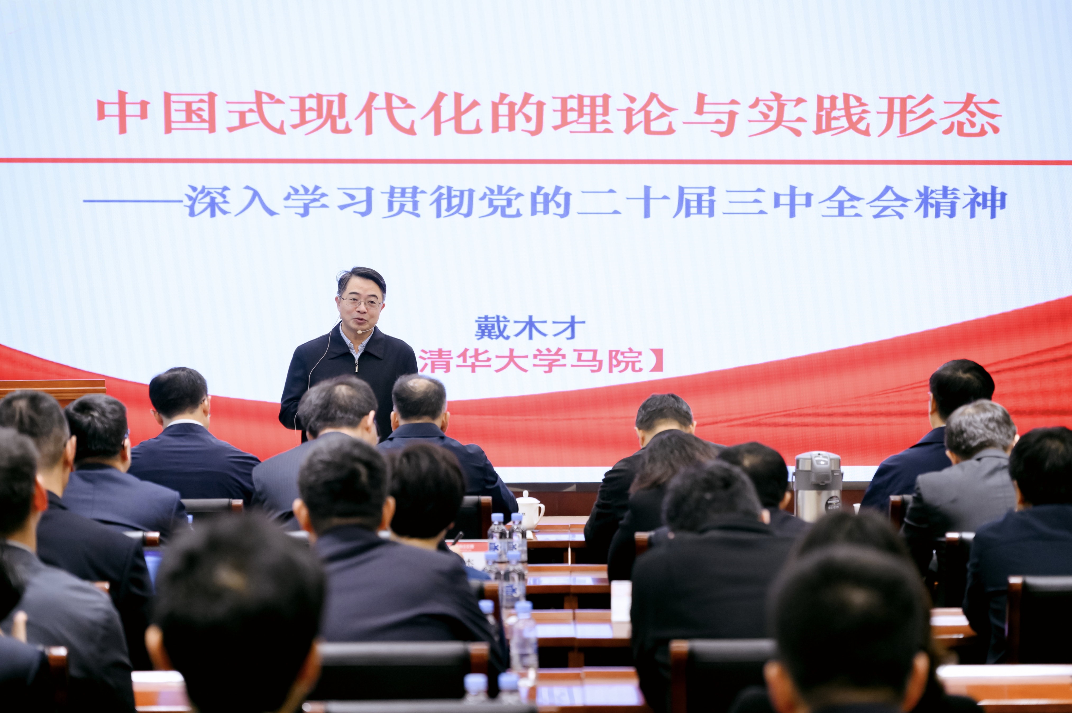 11月8日,中國國新舉辦黨的二十屆三中全會專題宣講會暨2024年宣傳思想文化工作培訓(xùn)班。清華大學(xué)習(xí)近平新時代中國特色社會主義思想研究院研究員、中國倫理學(xué)會副會長戴木才教授應(yīng)邀作專題宣講。公司黨委書記、董事長徐思偉,黨委副書記、總經(jīng)理莫德旺出席會議。公司黨委副書記、董事黃耀文主持會議。公司領(lǐng)導(dǎo)班子其他成員參加會議。