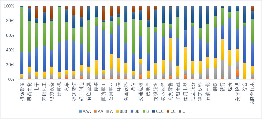 各行業(yè)評(píng)價(jià)結(jié)果分布情況