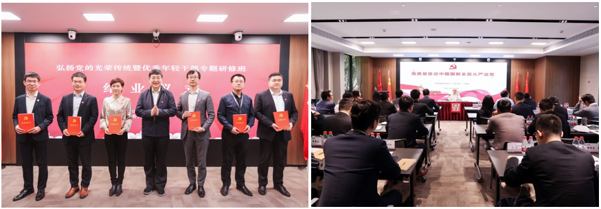 黃耀文向?qū)W員代表頒發(fā)結(jié)業(yè)證書,并作結(jié)業(yè)講話。黃耀文指出,公司競(jìng)爭(zhēng)的核心是人才,優(yōu)秀人才是開拓國(guó)有資本運(yùn)營(yíng)事業(yè)的重要力量。中國(guó)國(guó)新優(yōu)秀年輕干部要加強(qiáng)黨史學(xué)習(xí)教育,在學(xué)習(xí)中共黨史中凝魂聚力、增強(qiáng)本領(lǐng);要把優(yōu)秀作為一種習(xí)慣,努力做到勤學(xué)善思、躬身踐行、修身律己。王黎曉作了題為《高質(zhì)量推進(jìn)中國(guó)國(guó)新全面從嚴(yán)治黨》的專題授課,系統(tǒng)闡述了全面從嚴(yán)治黨的內(nèi)涵和必要性,對(duì)2021年公司紀(jì)檢和巡視工作主要任務(wù)進(jìn)行深入解讀,強(qiáng)調(diào)優(yōu)秀年輕干部要時(shí)刻用國(guó)有企業(yè)領(lǐng)導(dǎo)人員“20字”標(biāo)準(zhǔn)檢視自己,切實(shí)落實(shí)講政治、守紀(jì)律、有擔(dān)當(dāng)?shù)臉?biāo)準(zhǔn)要求。