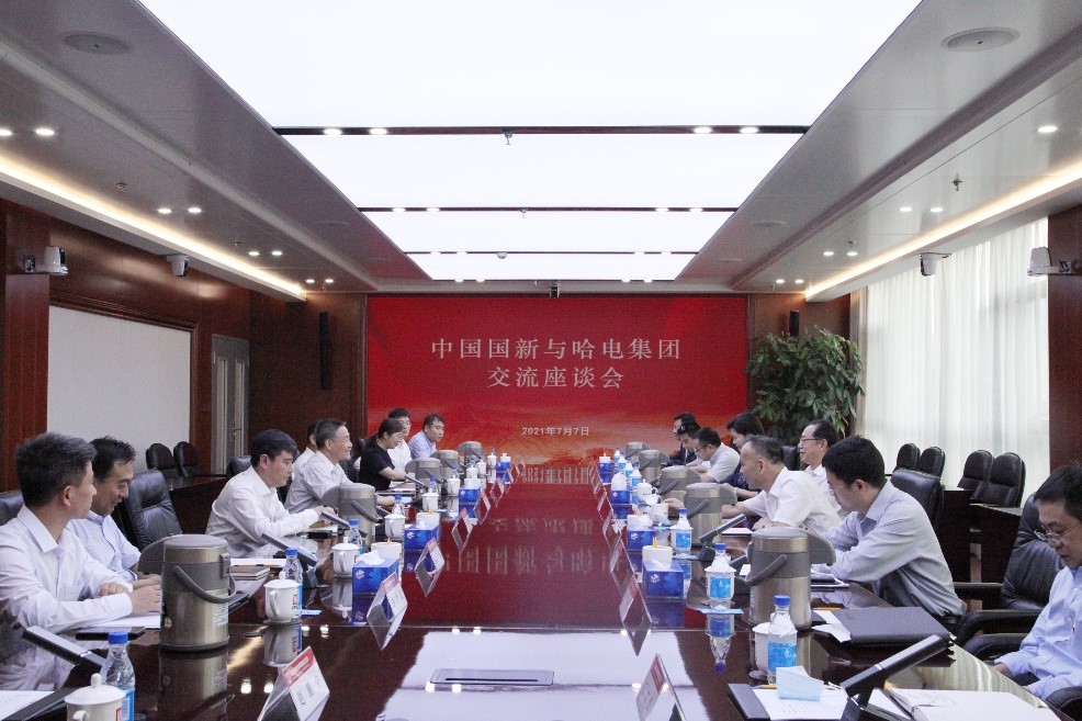 7月7日下午,中國(guó)國(guó)新黨委書記、董事長(zhǎng)周渝波在公司總部與哈電集團(tuán)董事長(zhǎng)斯?jié)煞蛞恍羞M(jìn)行座談交流。中國(guó)國(guó)新黨委副書記、總經(jīng)理莫德旺,哈電集團(tuán)黨委常委、副總經(jīng)理張英健參加了座談。