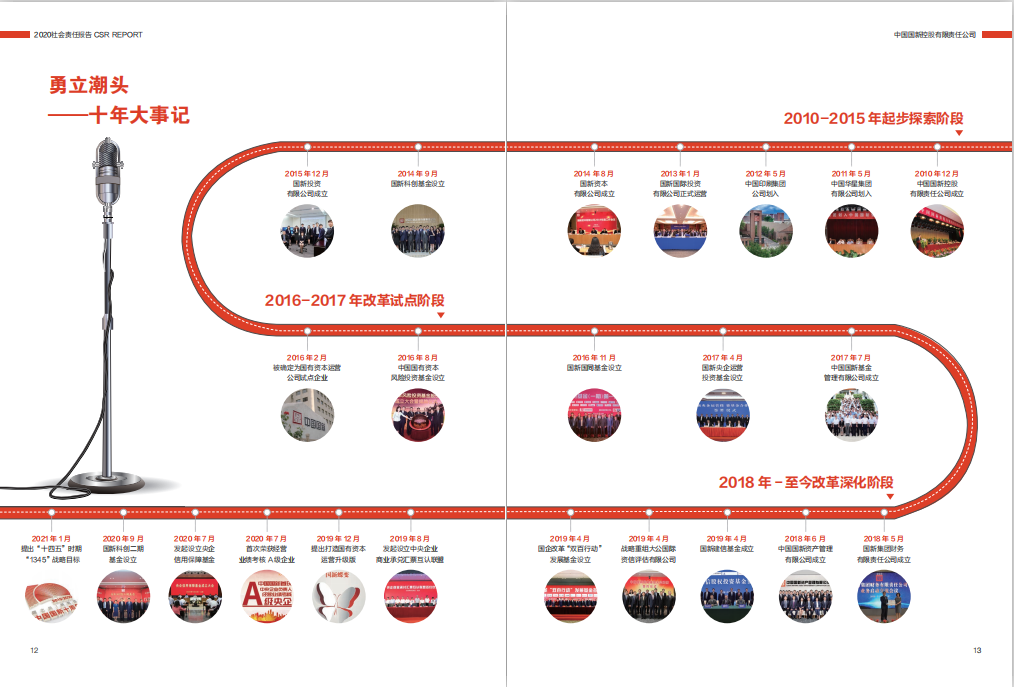 回顧中國(guó)國(guó)新十年發(fā)展歷程,展示公司探索實(shí)踐、特別是開展國(guó)有資本運(yùn)營(yíng)試點(diǎn)取得的積極進(jìn)展和經(jīng)驗(yàn)成效。