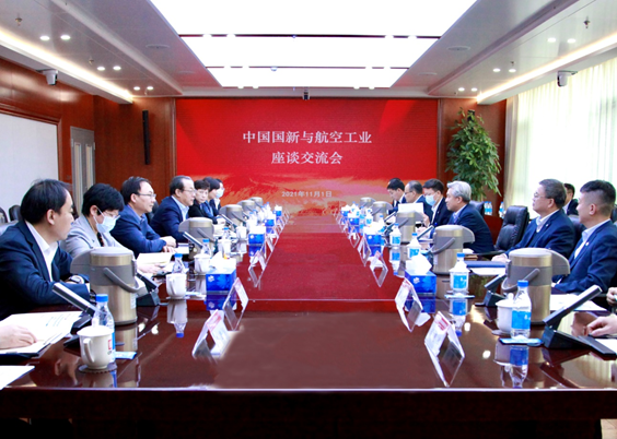 11月1日下午,中國(guó)國(guó)新黨委書記、董事長(zhǎng)周渝波在公司總部會(huì)見了來(lái)訪的中國(guó)航空工業(yè)集團(tuán)有限公司(以下簡(jiǎn)稱航空工業(yè))黨組書記、董事長(zhǎng)譚瑞松一行,中國(guó)國(guó)新黨委委員、副總經(jīng)理王豹參加會(huì)見。