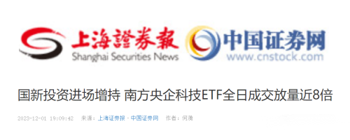12月1日,上海證券報(bào)刊載《國(guó)新投資進(jìn)場(chǎng)增持 南方央企科技ETF全日成交放量近8倍》,報(bào)道國(guó)新投資增持中證國(guó)新央企科技類指數(shù)基金?,F(xiàn)全文分享如下: