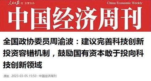 3月5日,《中國經(jīng)濟(jì)周刊》聚焦兩會聲音,圍繞國有資本優(yōu)化配置,采訪全國政協(xié)委員,中國國新黨委書記、董事長周渝波,并刊發(fā)《全國政協(xié)委員周渝波:建議完善科技創(chuàng)新投資容錯機(jī)制,鼓勵國有資本敢于投向科技創(chuàng)新領(lǐng)域》一文?,F(xiàn)將全文分享如下: