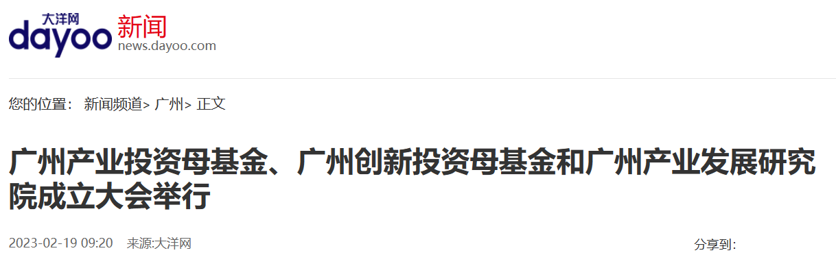2月18日,廣州產(chǎn)業(yè)投資母基金、廣州創(chuàng)新投資母基金和廣州產(chǎn)業(yè)發(fā)展研究院成立大會在廣州白云國際會議中心舉行。中國國新黨委副書記、董事黃耀文出席活動,廣州日報大洋網(wǎng)發(fā)布《廣州產(chǎn)業(yè)投資母基金、廣州創(chuàng)新投資母基金和廣州產(chǎn)業(yè)發(fā)展研究院成立大會舉行》一文,報道相關(guān)情況?,F(xiàn)將全文分享如下: