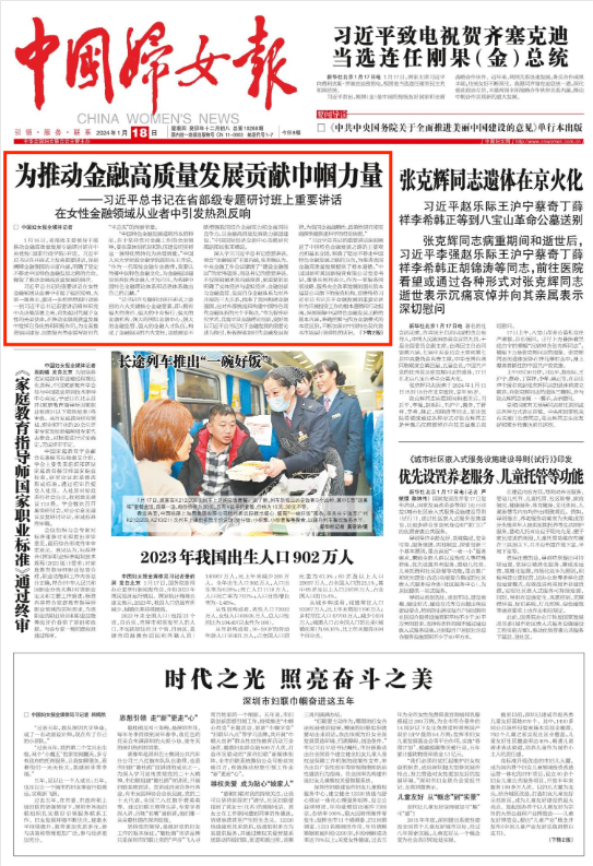 1月18日,《中國婦女報(bào)》聚焦習(xí)近平總書記在省部級專題研討班上重要講話在女性金融領(lǐng)域從業(yè)者中引發(fā)的熱烈反響,刊發(fā)《為推動(dòng)金融高質(zhì)量發(fā)展貢獻(xiàn)巾幗力量》一文,并采訪了中國國新所屬國新投資黨委書記、董事長柯珂等女性金融領(lǐng)域從業(yè)者?,F(xiàn)全文分享如下: