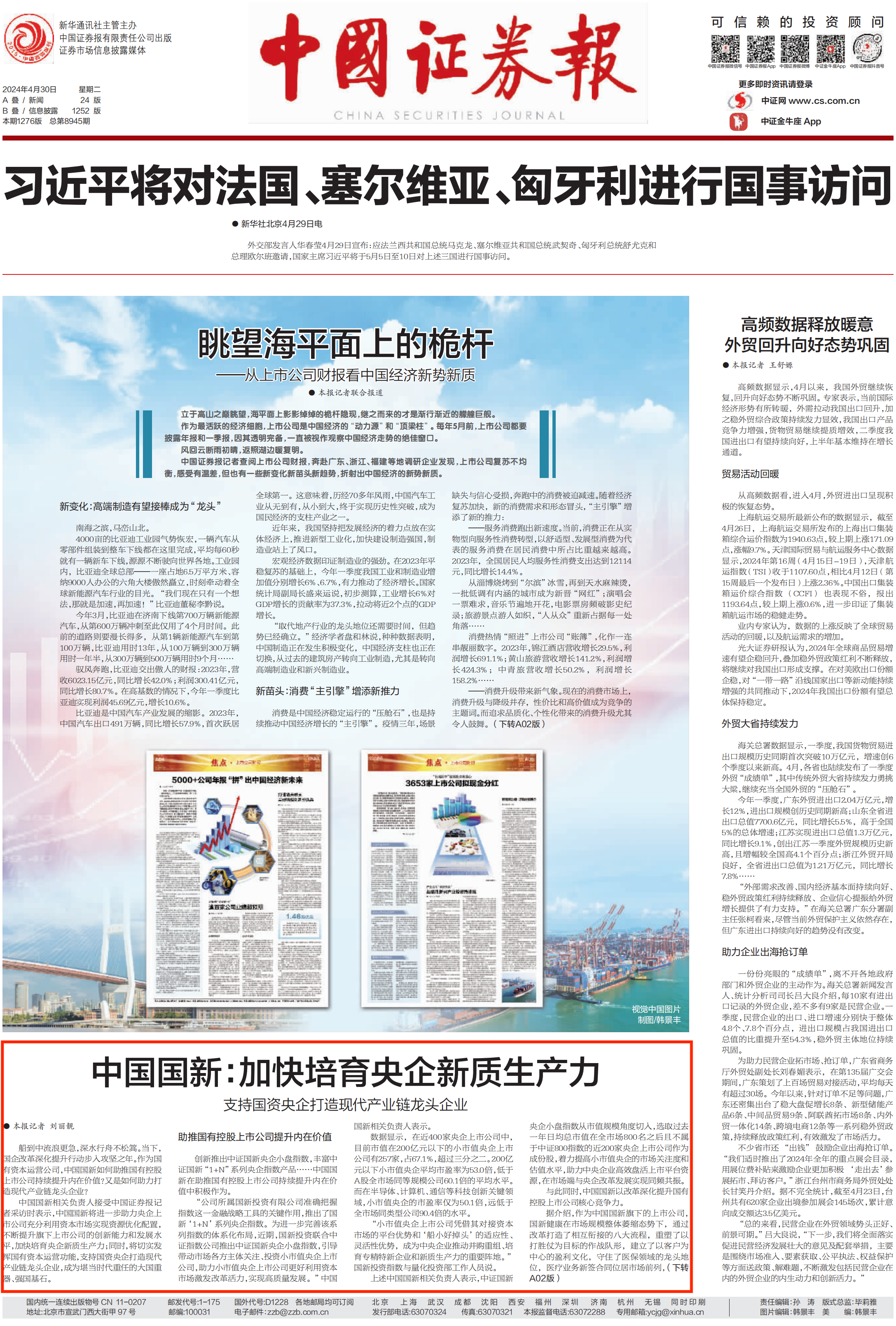 4月30日,中國(guó)證券報(bào)頭版刊載《中國(guó)國(guó)新:加快培育央企新質(zhì)生產(chǎn)力 支持國(guó)資央企打造現(xiàn)代產(chǎn)業(yè)鏈龍頭企業(yè)》,報(bào)道了中國(guó)國(guó)新推動(dòng)國(guó)有控股上市公司持續(xù)提升內(nèi)在價(jià)值,助力打造現(xiàn)代產(chǎn)業(yè)鏈龍頭企業(yè),加快培育央企新質(zhì)生產(chǎn)力?,F(xiàn)將全文分享如下: