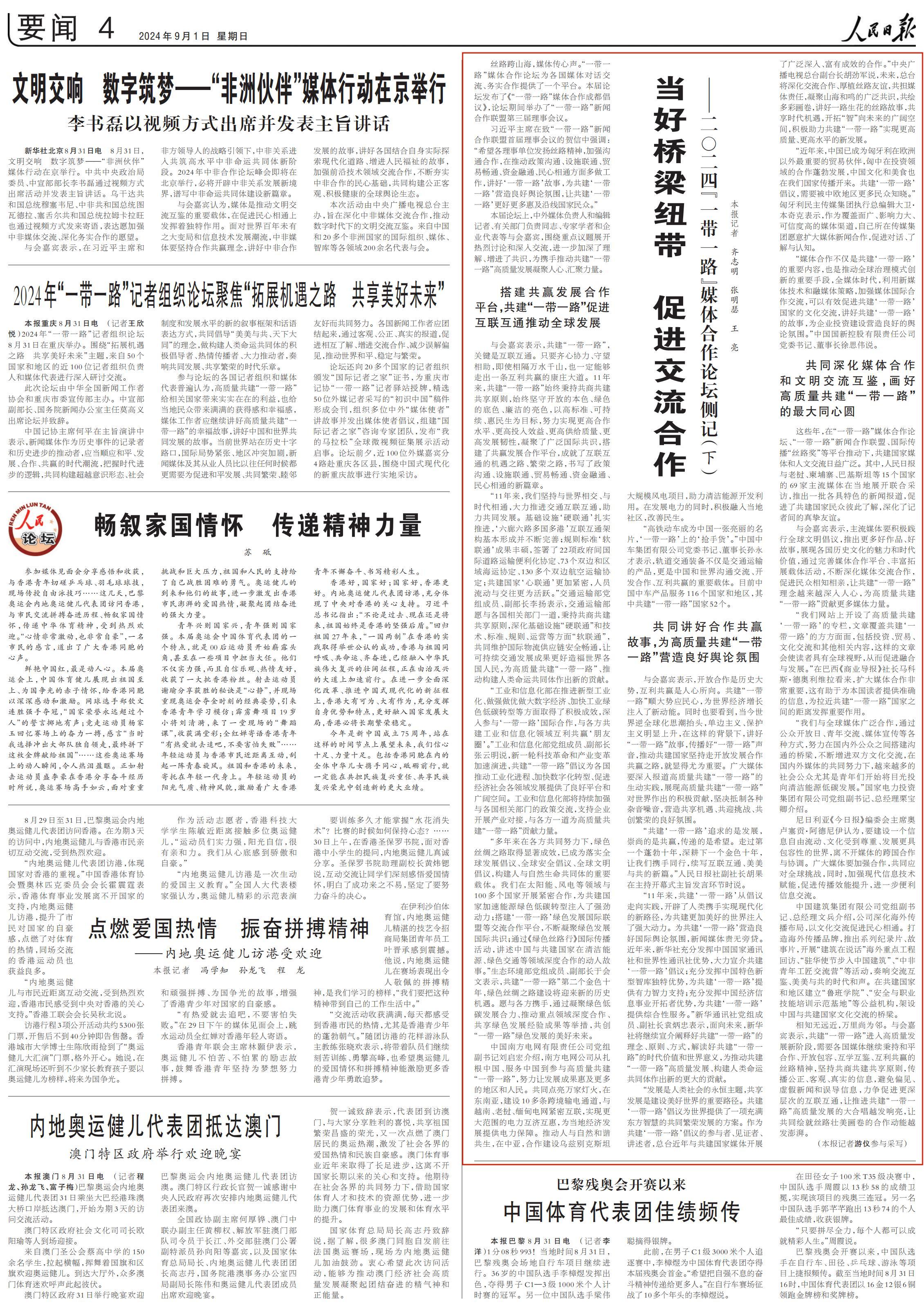 8月28日至8月29日,2024“一帶一路”媒體合作論壇在四川省成都市舉辦。《人民日報》9月1日推出對本次論壇的綜述報道,其中摘引中國國新黨委書記、董事長徐思偉在論壇上的發(fā)言。現(xiàn)分享如下: