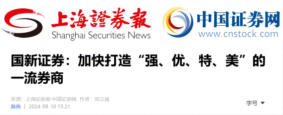 今天,推出相關報道第5篇:《上海證券報》中國證券網9月10日刊發(fā)的《國新證券:加快打造“強、優(yōu)、特、美”的一流券商》。
