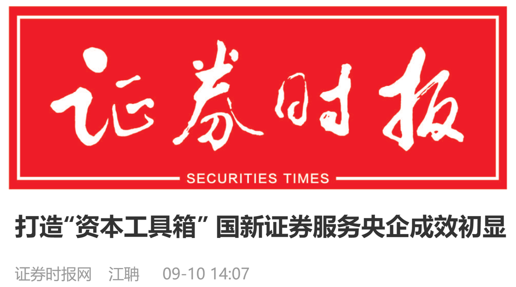 今天,推出相關(guān)報(bào)道第6篇:《證券時(shí)報(bào)》證券時(shí)報(bào)網(wǎng)9月10日刊發(fā)的《打造“資本工具箱” 國(guó)新證券服務(wù)央企成效初顯》。