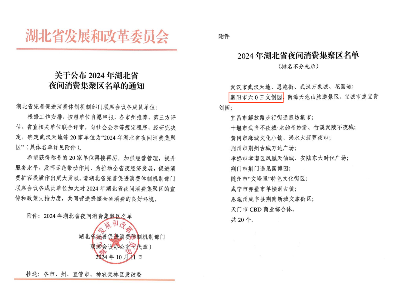 日前,湖北省完善促進(jìn)消費(fèi)體制機(jī)制部門(mén)聯(lián)席會(huì)議辦公室公布2024年湖北省夜間消費(fèi)集聚區(qū)名單,中文發(fā)集團(tuán)所屬六0三文創(chuàng)園入選。
